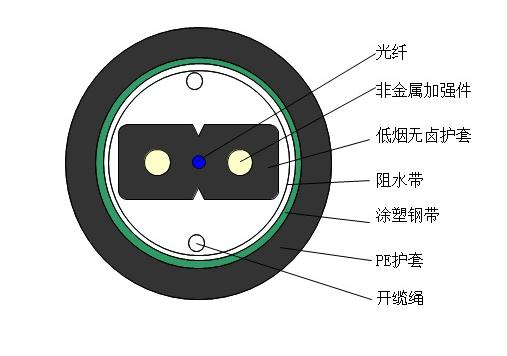 兩根平行FRP使光纜具有良好的抗壓性能,保護光纖;